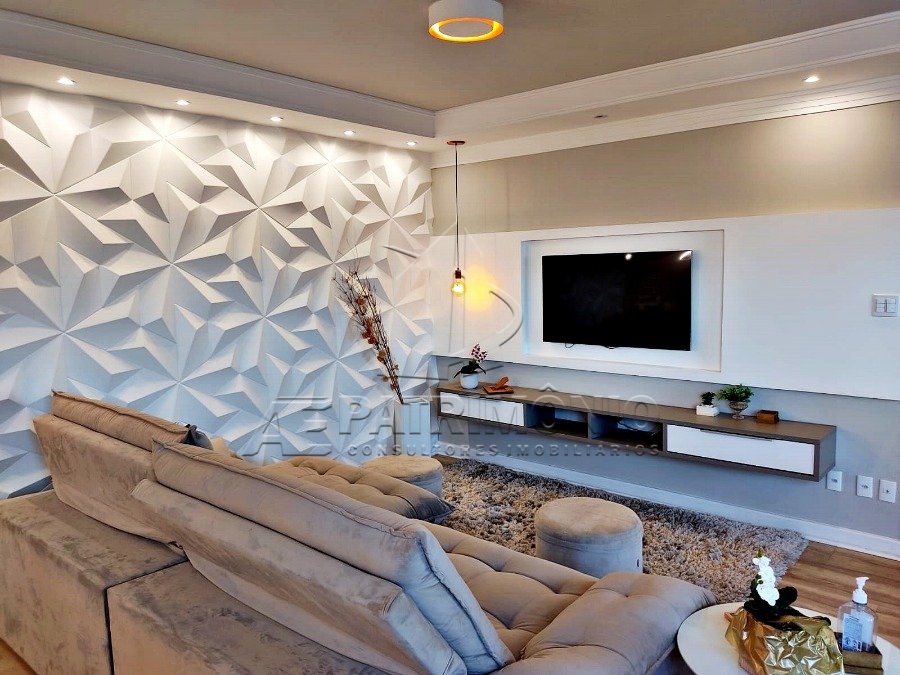 Acabamento interno: Todo em piso laminado exceto cozinha e banheiros. Todas as suítes contam com estrutura de cabeamento para TV, telefone e internet. Banheiros com fino acabamento. Suítes com modulados e sacadas. Sala 2 ambientes ampla e com sanca de gesso rebaixado, iluminação de led e parede com moldura 3D. Cozinha modulada. Lavanderia ampla com modulados.