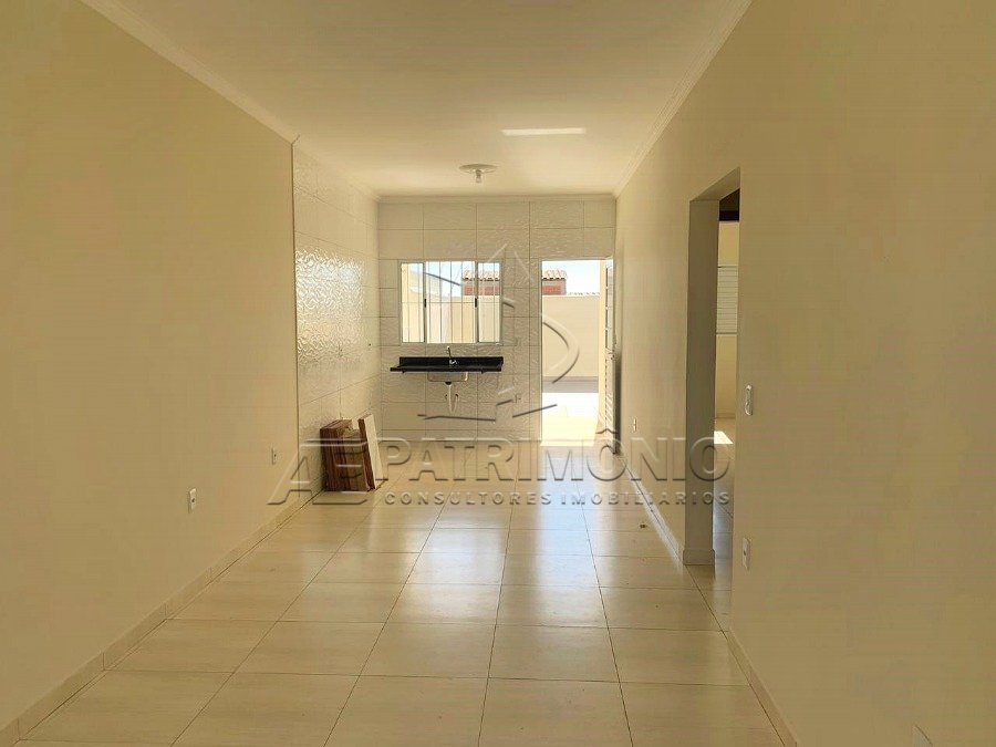 Casa térrea com sala 2 ambientes, 2 dormitórios sendo 1 suíte, área de serviço, um quintal bem amplo e garagem para até 3 carros médios.